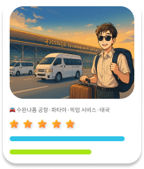 방콕과 파타야 구간은 태국여행114의 정식 드라이버가 직접 운행하며, 후아힌 등 기타 지역은 신뢰할 수 있는 공식 협력업체를 통해 동일한 수준의 안전한 서비스를 제공합니다.