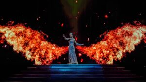 수많은 깃털과 화려한 조명이 빛나는 환상적인 피날레 무대가 가슴을 뛰게 합니다. 🎉