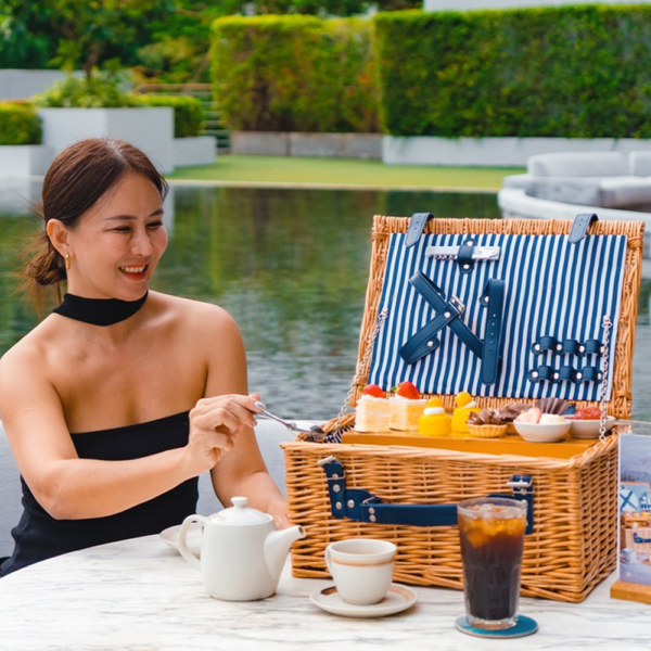 애프터눈 티 세트는 피크닉 콘셉트의 바구니 형태로도 제공될 수 있으며, 리조트 내 야외 공간(테라스 또는 지정 구역)에서 즐길 수 있습니다.